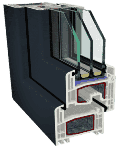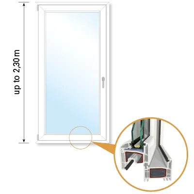 • Didelį lango konstrukcijų stabilumą suteikia plataus profilio plieno armatūra pagrindinės lango varčios ir rėmo profilio kameros viduje.