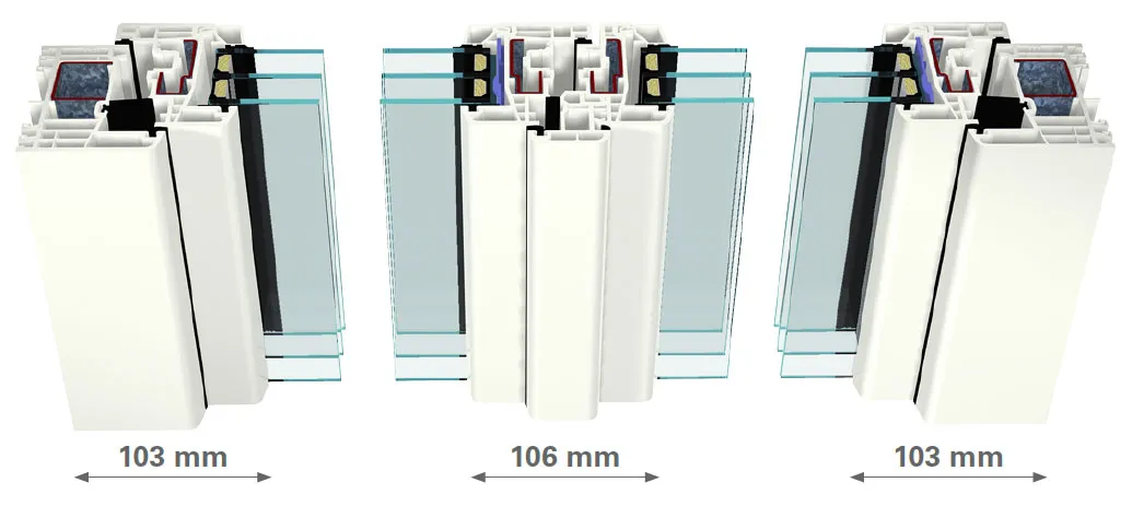 Kuriant šią profilių kombinaciją, siauras matomas rėmo plotis buvo svarbiausias aspektas, tačiau tuo pačiu nepažeistos konstrukcijos stabilumo charakteristikos. Abiejose šių profilių deriniuose naudojamas plienas suteikia galimybę kurti didelės apimties langų konstrukcijas: baltos spalvos iki 2,30 m aukščio ir spalvotas iki 2,20 m aukščio. Jei derinate su stiklo klijavimo visu perimetru technologija STV®, galite kurti dar didesnius langų ir durų konstrukcijų elementus (net iki 2,50 m aukščio baltos spalvos ir iki 2,40 m spalvotų).
